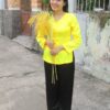 Áo bà ba nữ phi bóng màu trắng