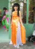 Áo dài cách điệu cổ yếm vải phi kim tuyến màu cam