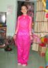 Áo dài cách tân kim sa tà xéo màu hồng