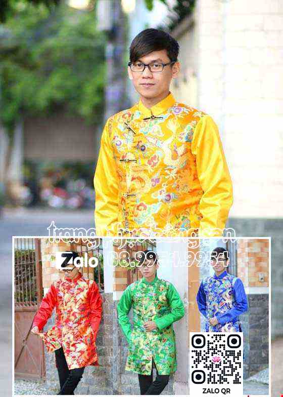 Các mẫu áo dài cách tân nam vải gấm thêu họa tết rồng tại Trang Phục Bông Sen.