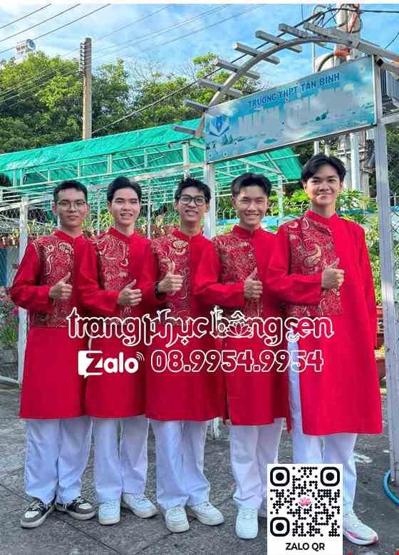 Áo dài lụa đỏ vẽ bông chéo ngực