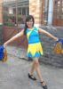Áo váy múa cổ động xanh da trời phối vàng
