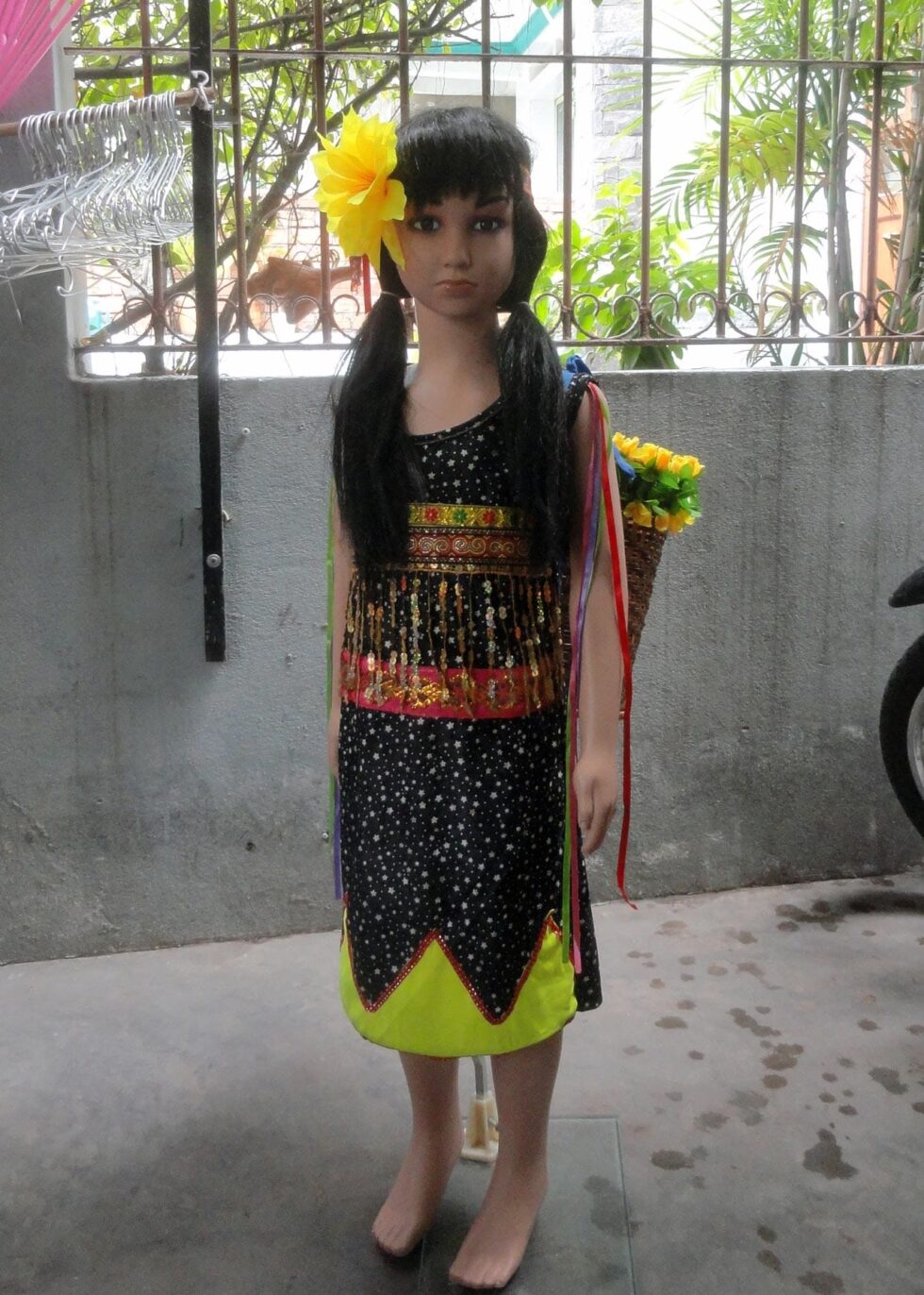 Đầm Tây Nguyên mầm non nhung đen lửa vàng họa tiết ngôi sao