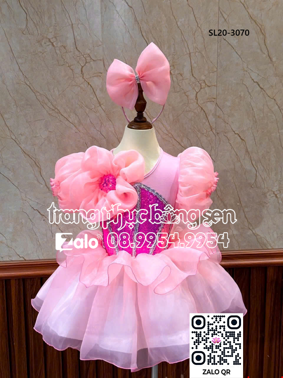 Đầm múa trẻ em kim sa vàng bông to -Áo váy mầm non