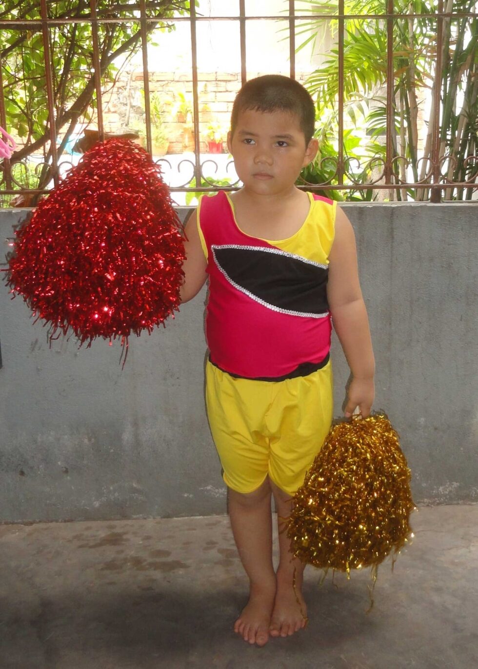 Đồ múa aerobic mầm non nam hồng phối đen