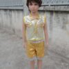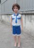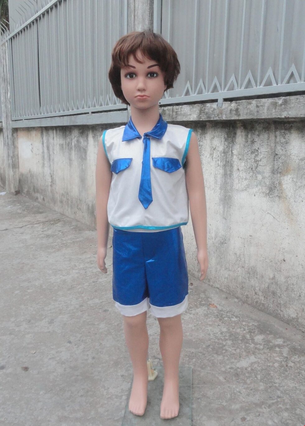 Đồ múa hiện đại mầm non quần áo thun da trắng xanh bích cổ gắn cà vạt