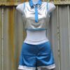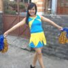 Đồ múa trẻ em quần xanh áo da cổ tròn