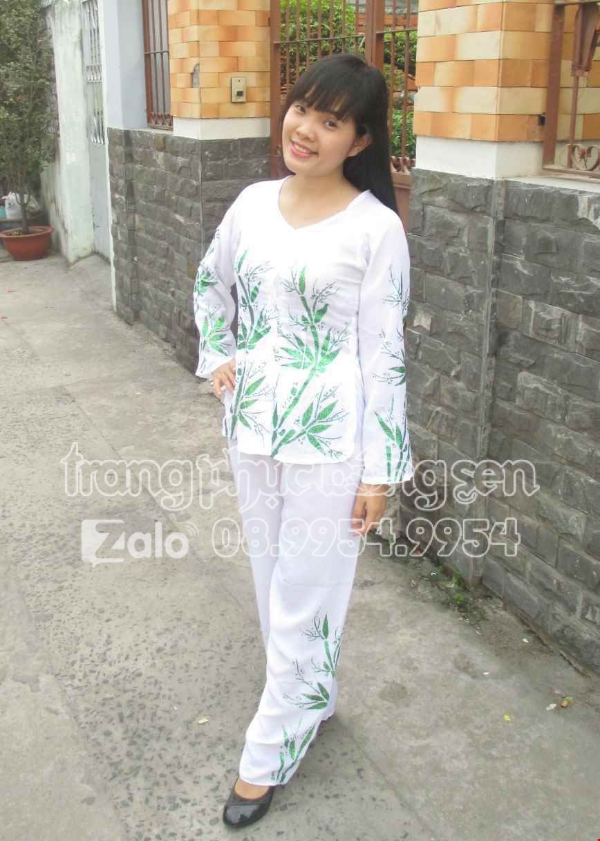 Áo bà ba nữ vẽ họa tiết kim tuyến. Size dành cho người lớn. Sản phẩm được cho thuê tại cửa hàng Trang Phục Bông Sen.