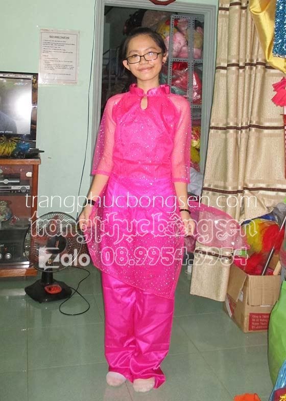 Áo dài cách tân kim sa tà xéo màu hồng