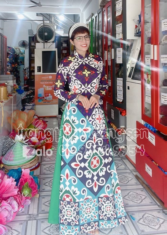 Áo dài cô 3 Sài Gòn hoa văn cổ điển