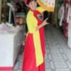 Bộ gồm: áo dài, chân váy xòe/ quần váy, mấn nữ nhân hoặc cài ngọc trai.