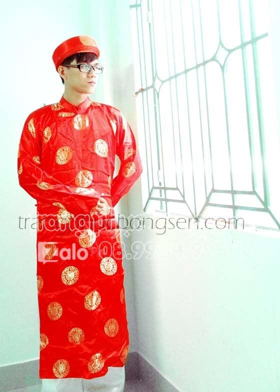 Áo dài nam gấm đòng tiền màu đỏ