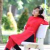 Áo dài trẻ em đỏ vàng vẽ hoa mai