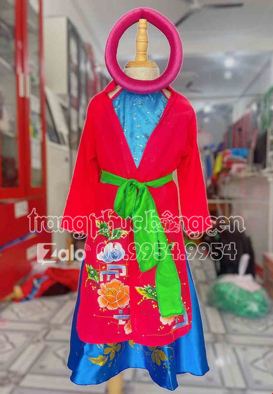 Áo tứ thân vẽ mầm non đỏ, đụp xanh dương