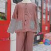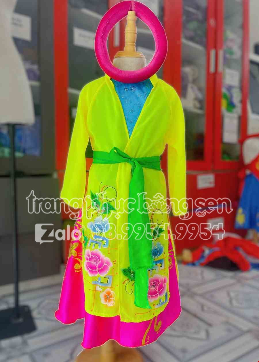 Áo tứ thân vẽ mầm non vàng, đụp hồng