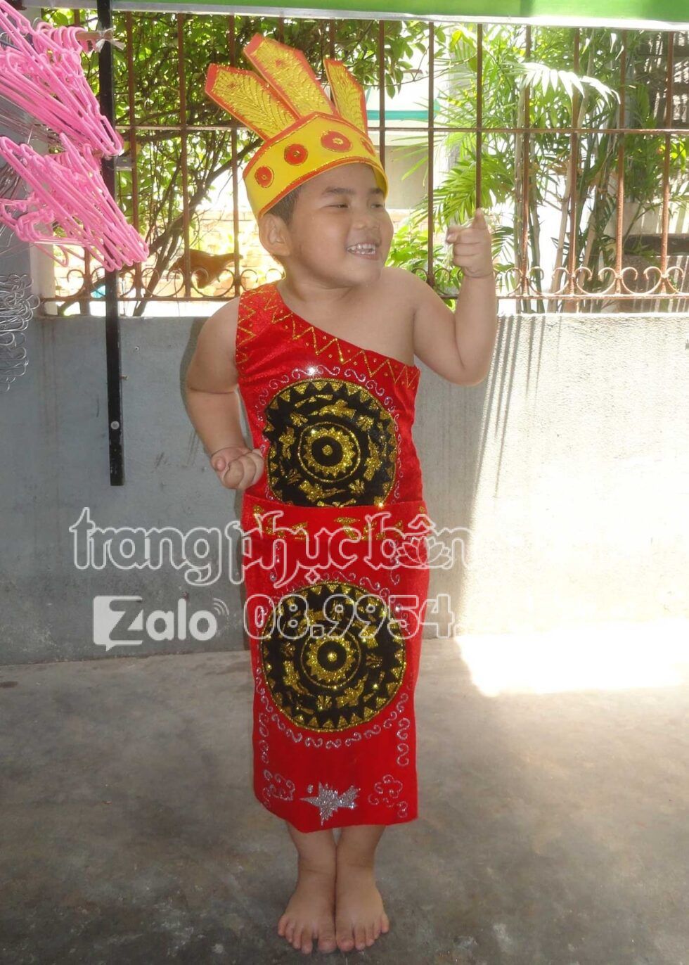 Gồm áo yếm, quần, đai nhiều tà và nón.