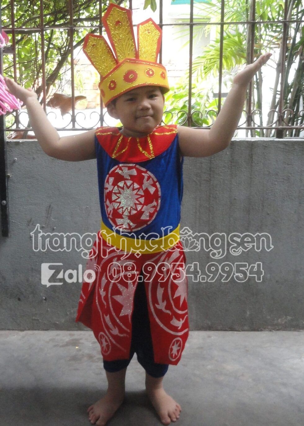 Âu Lạc trẻ em xanh bich viền đỏ đai nhiều tà