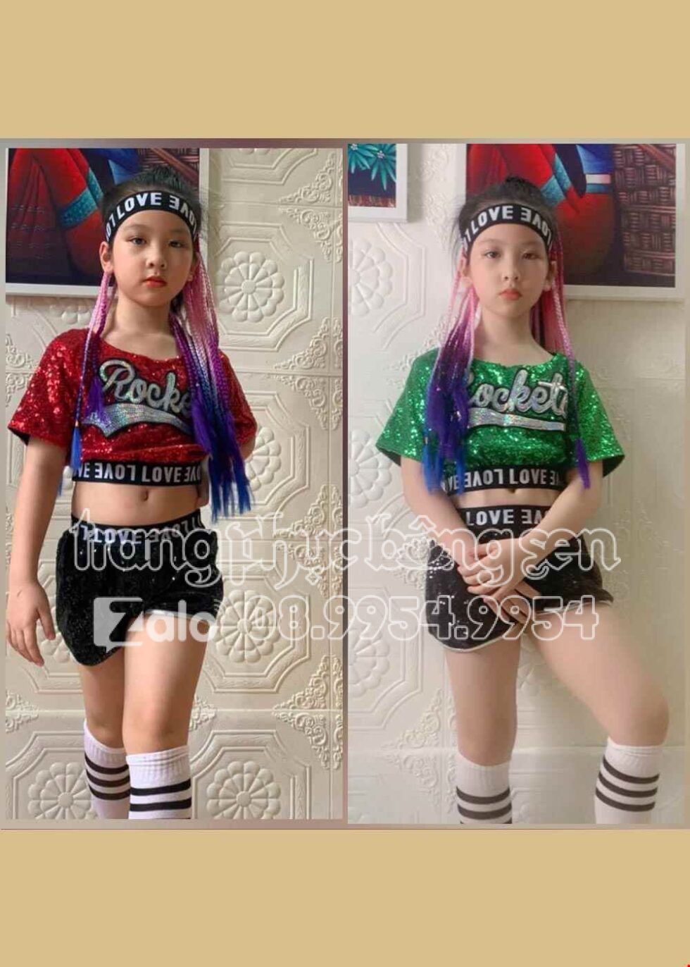 Bộ áo quần nhảy cổ động áo quần kim sa bím tóc trẻ em