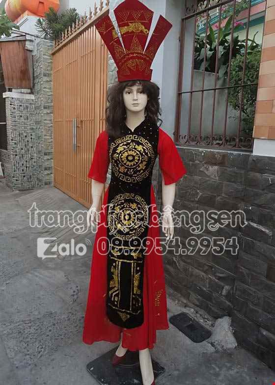 Đầm Âu lạc thân đen tà đỏ tay lửng