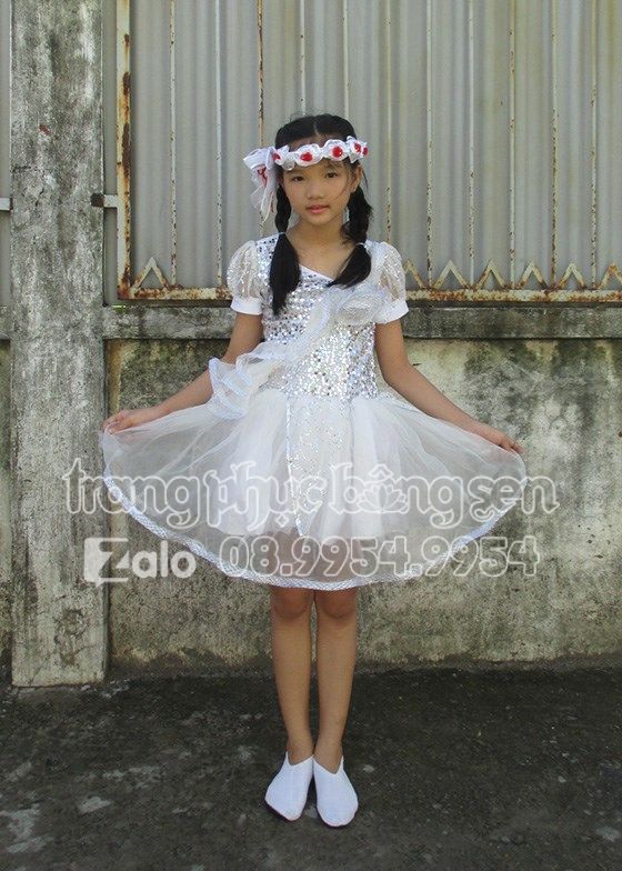 Đầm kim sa trẻ em trắng bèo ngực