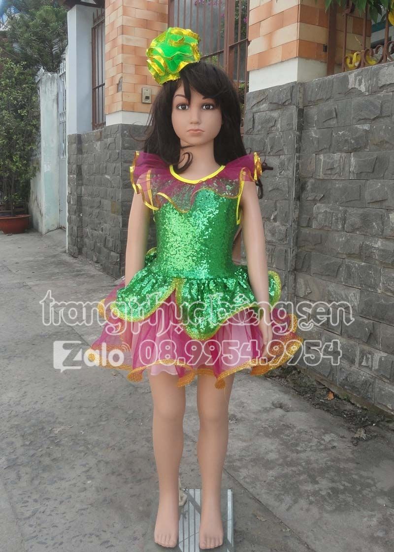 Đầm múa mầm non thân kim sa xanh lá bèo cổ váy hồng