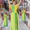 Đầm múa sen vàng, cổ trụ, 2 tà xanh