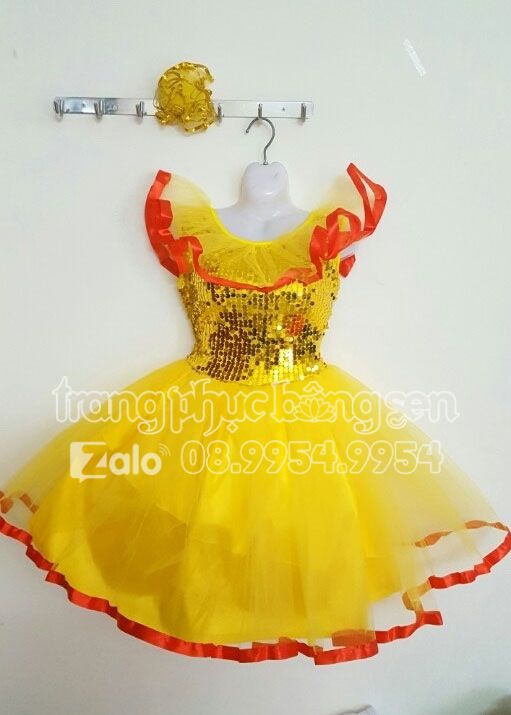 Đầm múa trẻ em kim sa vàng bèo cổ