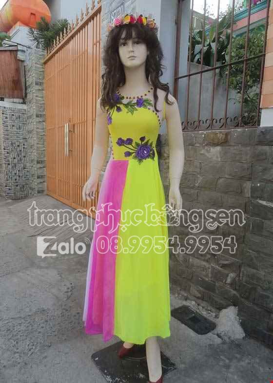 Đầm múa vàng thêu hoa 3D