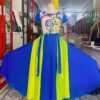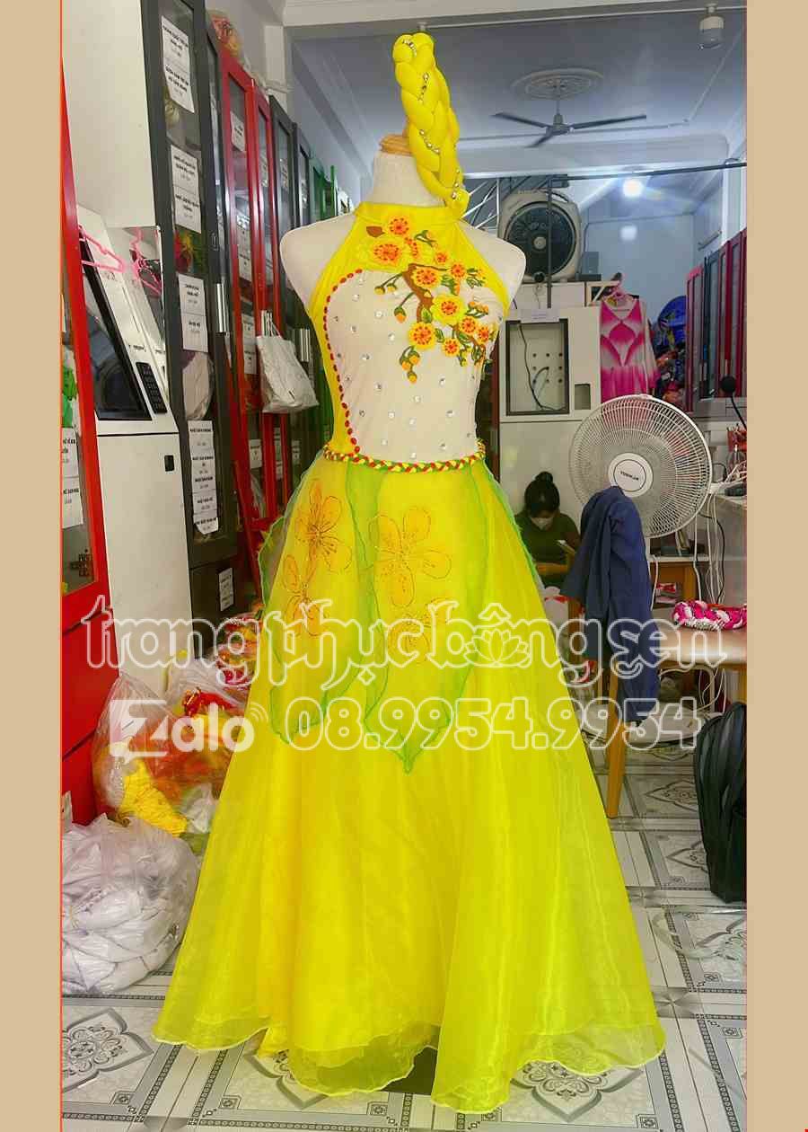 Đầm váy múa màu da ngực dán hoa váy lưới vàng nhiều cánh