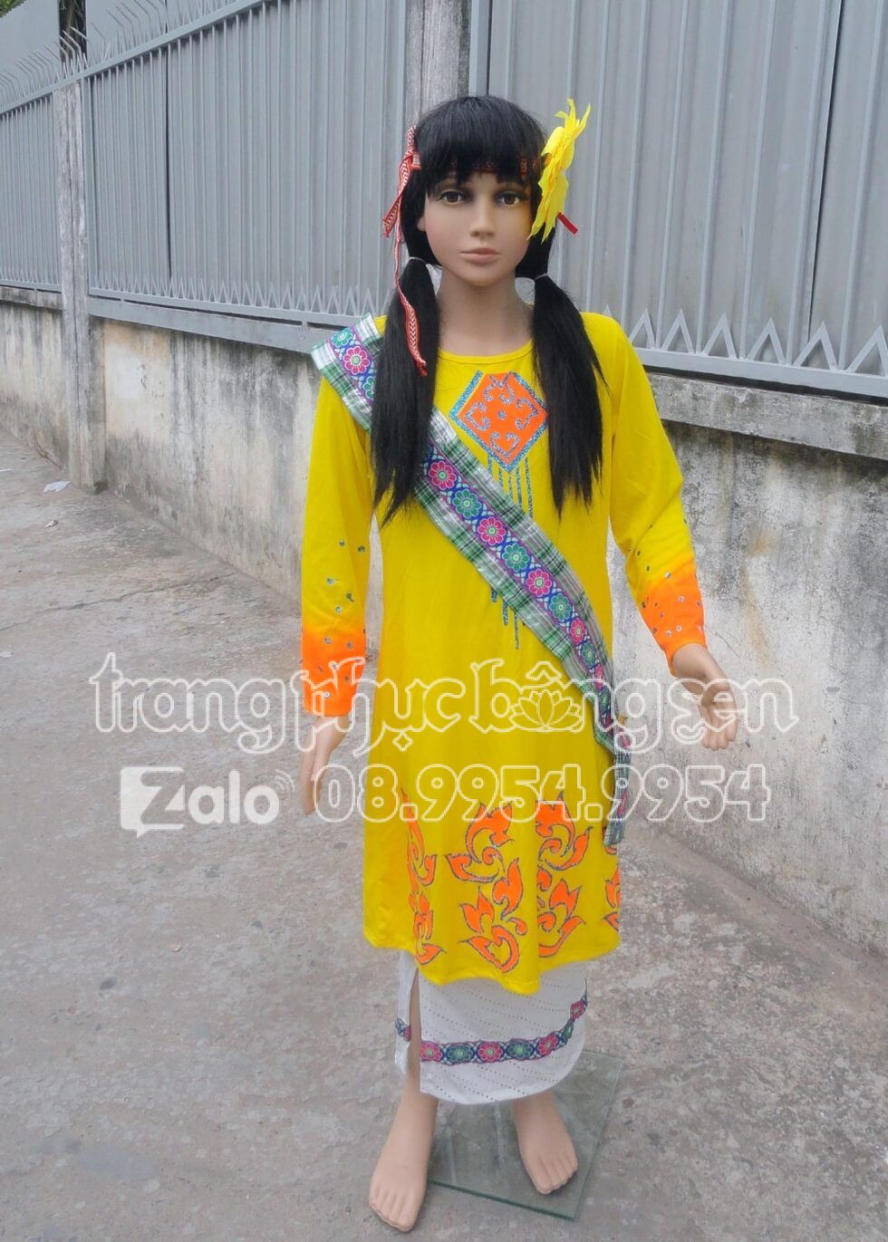Dân tộc Chăm tiểu học nữ thun vàng phun kim tuyến