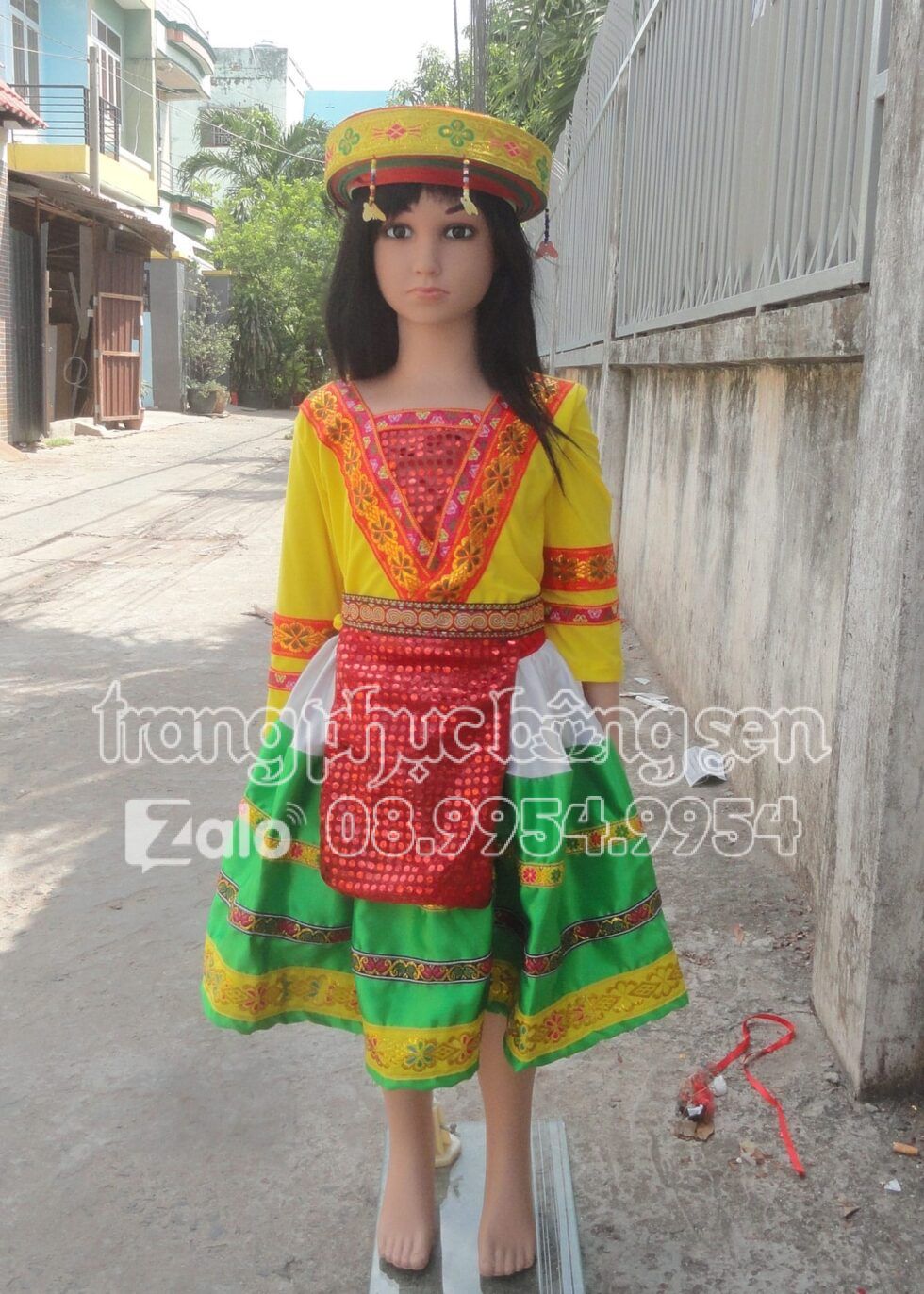 Dân tộc Mèo mầm non áo thun vàng viền đỏ váy phi xanh