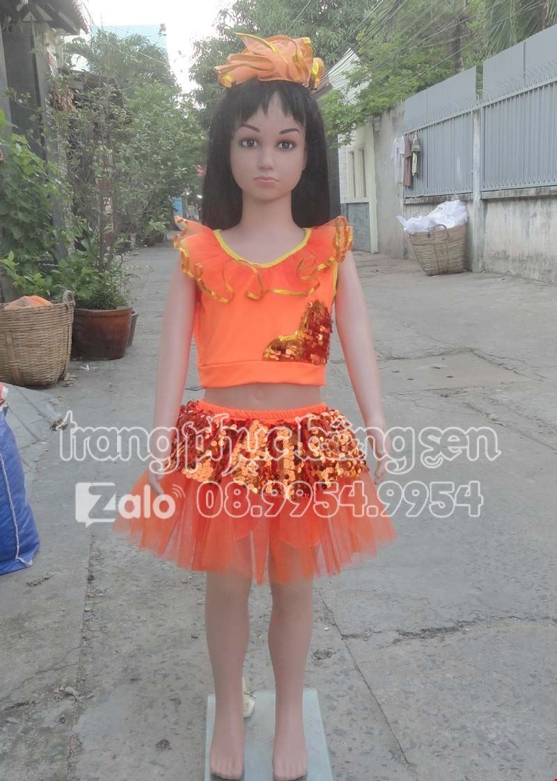Đồ nhảy cổ động mầm non áo váy kim sa vàng