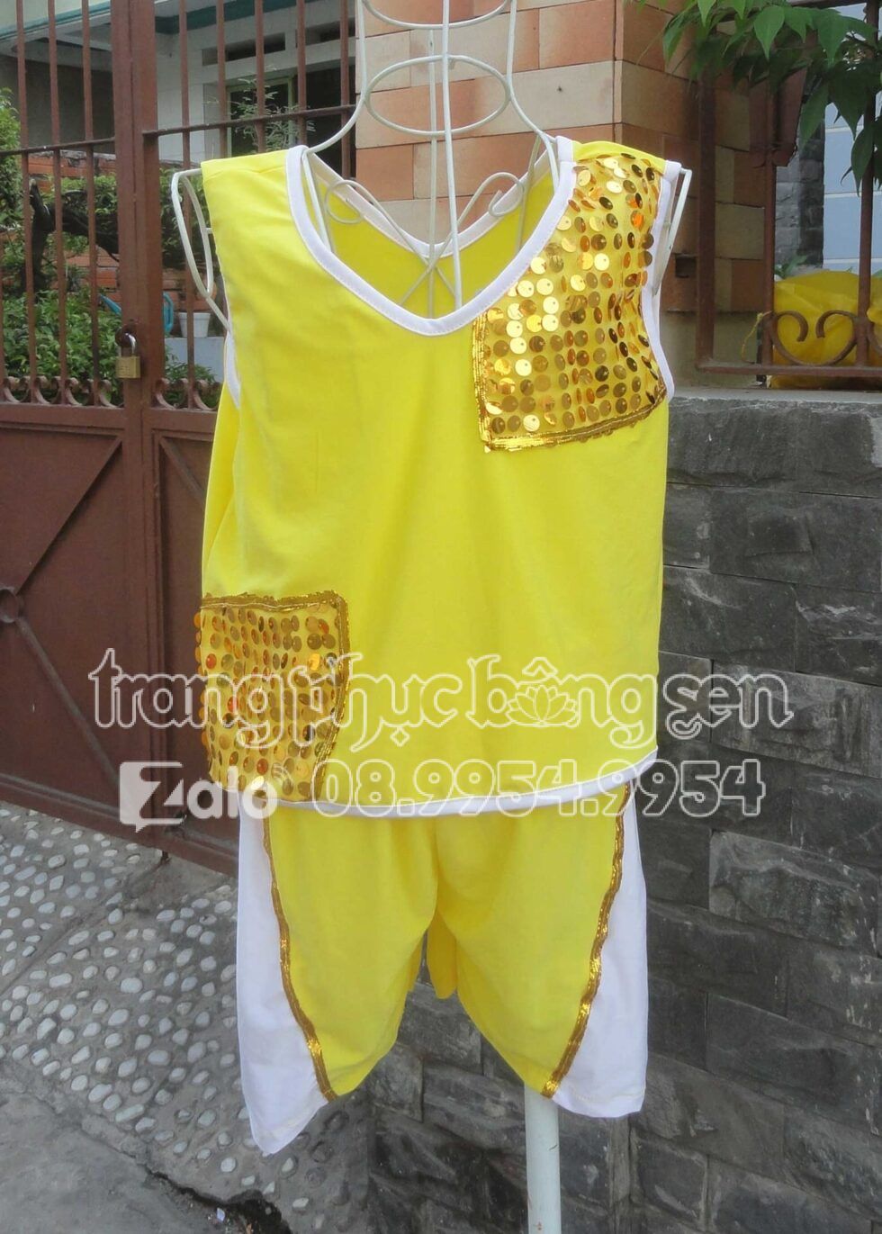 Đồ nhảy cổ động mầm non nam vàng phối kim sa