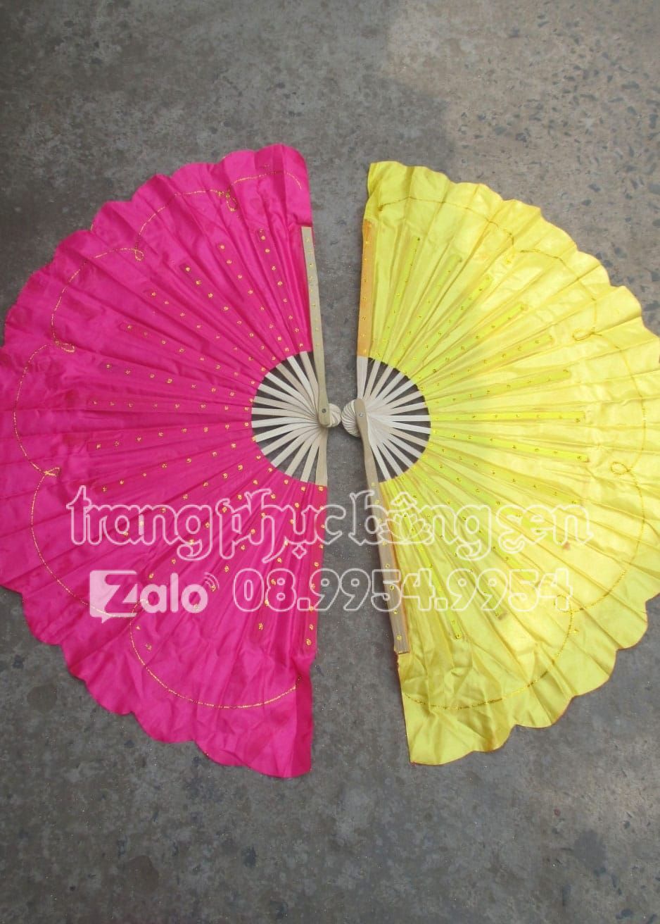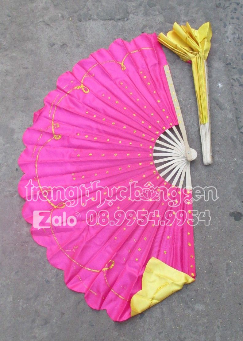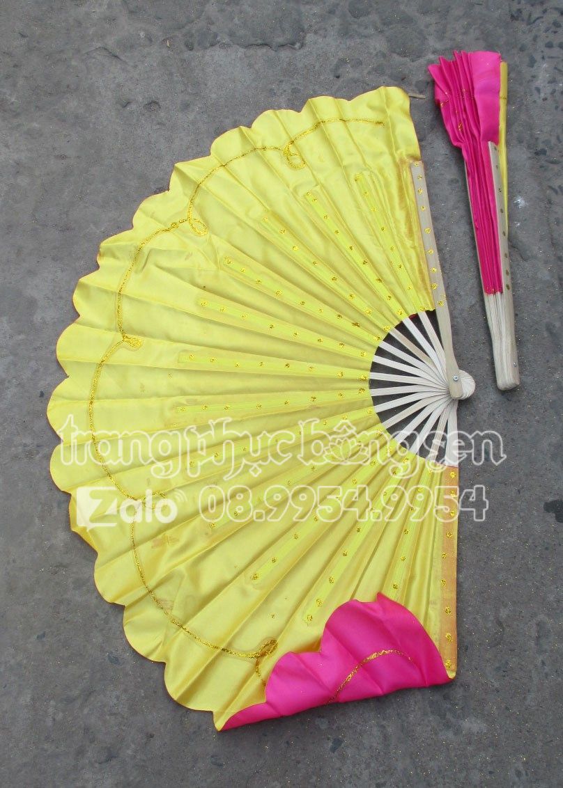 Quạt nan tre chấm bi kim tuyến 2 màu vàng – hồng