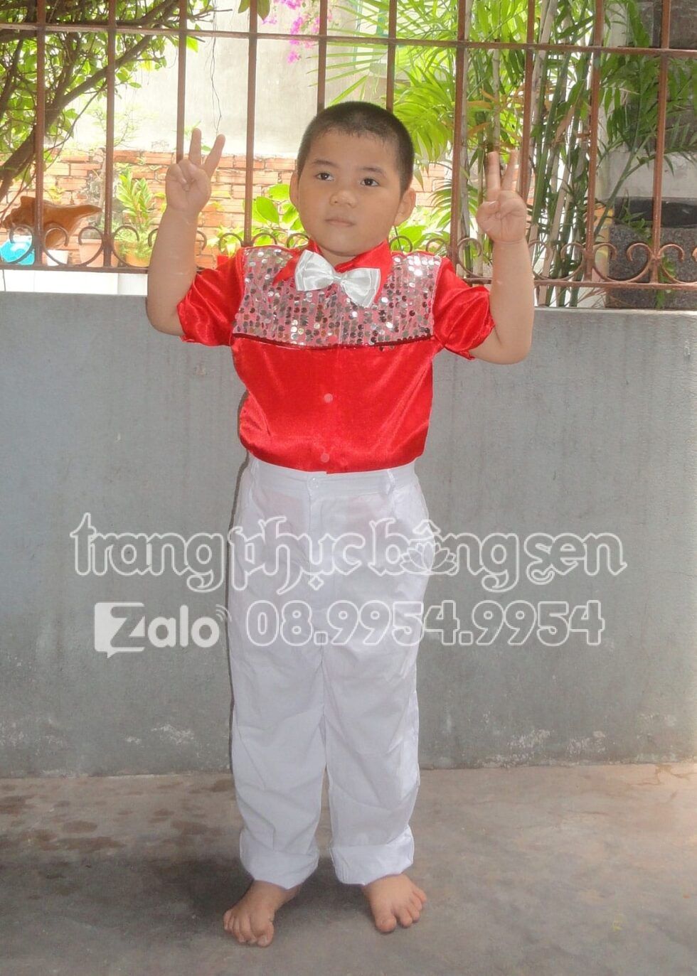Sơ mi mầm non nam vải bóng phối kim sa đỏ