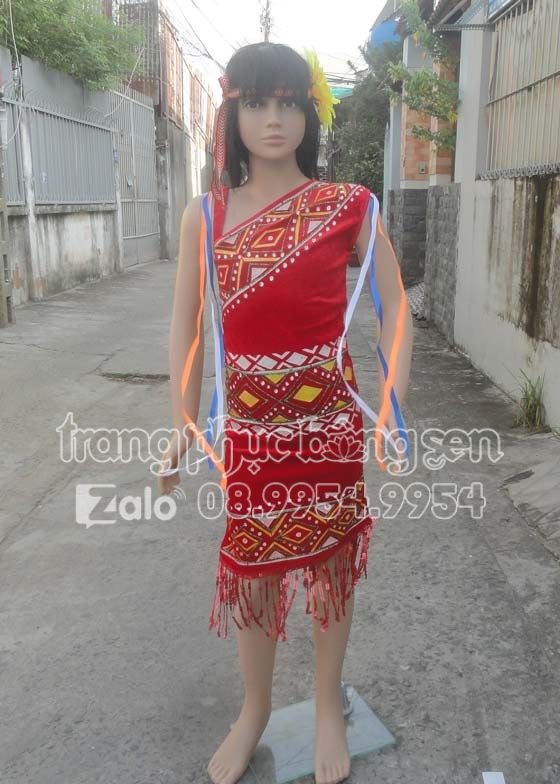 Tây Nguyên trẻ em – Váy chéo vai nhung đỏ phun kim tuyến