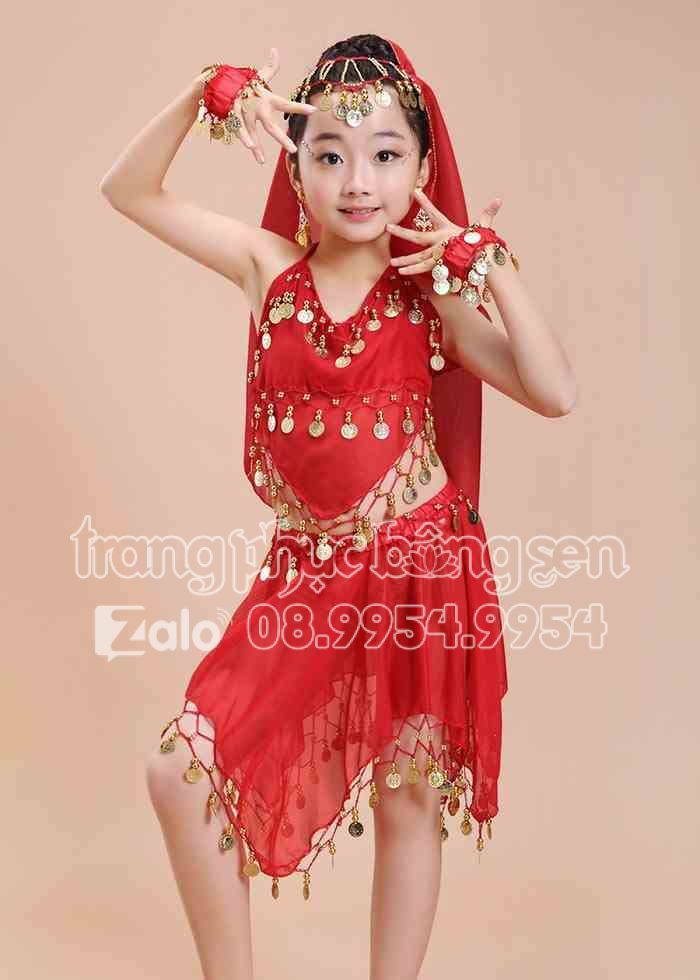 Trang phục Ấn Độ (múa bụng, belly dance) trẻ em yếm, váy đỏ