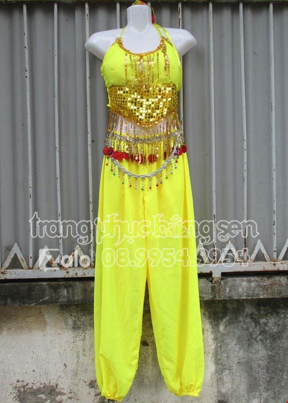 Trang phục Ấn Độ (múa bụng, belly dance) Yếm kim sa, quần vàng