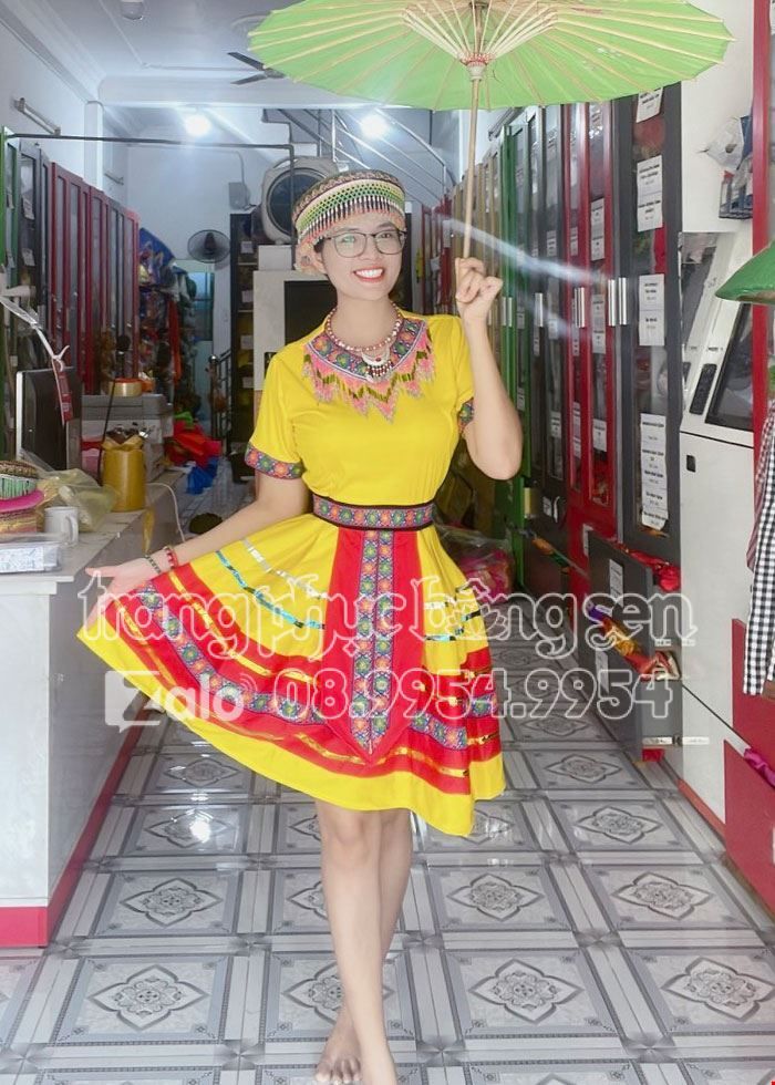 Trang phục biểu diễn 54 dân tộc (lẻ): H’Mông/Mèo vàng nguyên bộ, cổ tim nhỏ