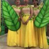 Bộ trang phục gồm yếm, váy, áo khoác tứ thân và vấn đội đầu.
