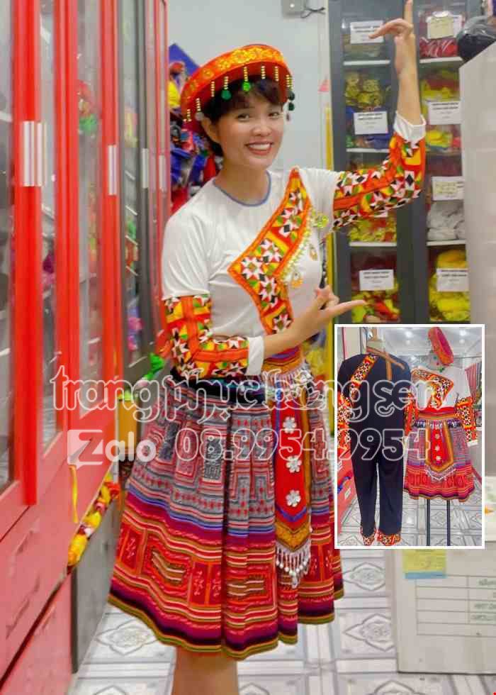 Trang phục dân tộc H’Mông / Mèo trắng tay dài phối thổ cẩm