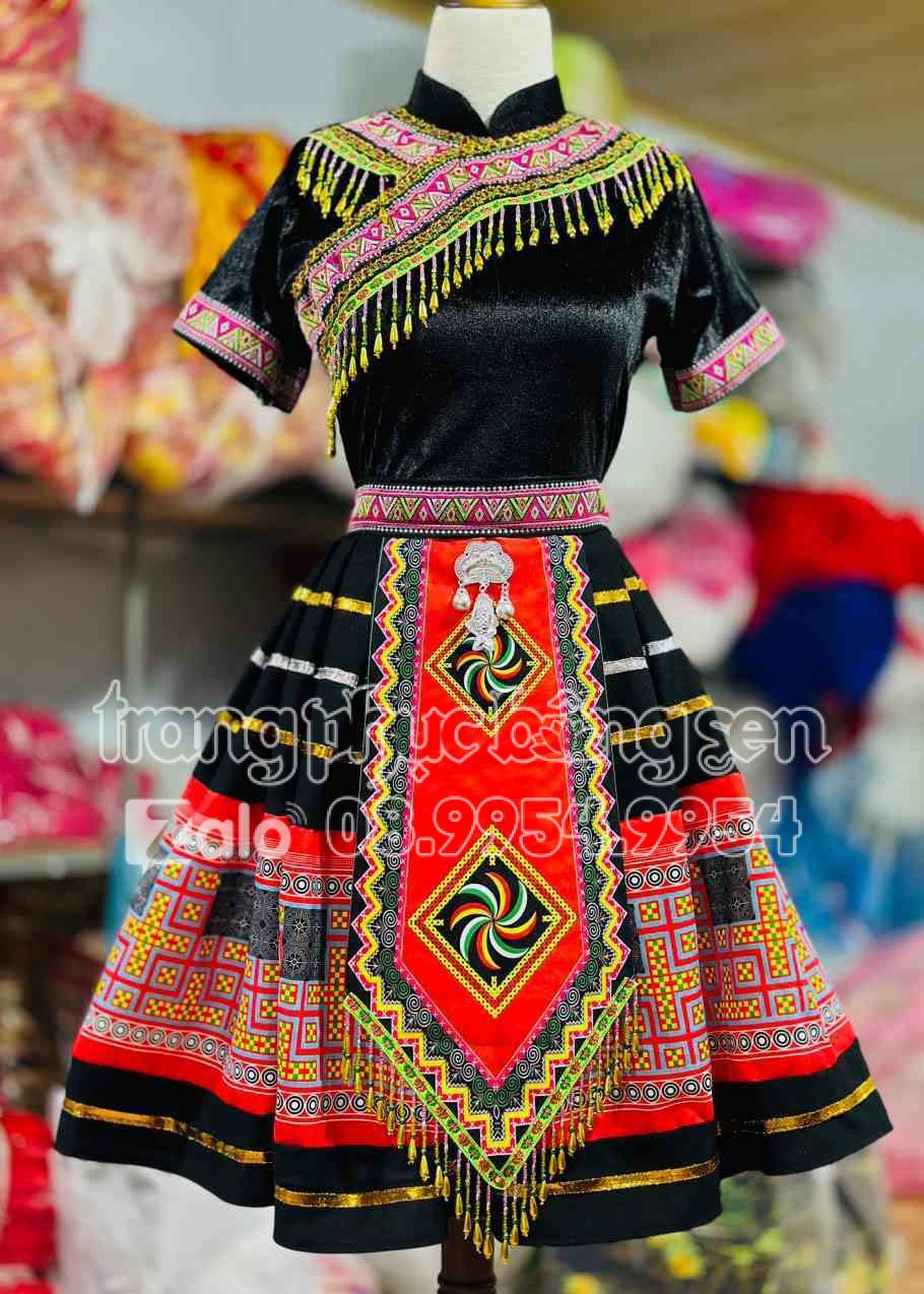 Trang phục dân tộc H’Mông nhung đen phối thổ cẩm cực kỳ đẹp