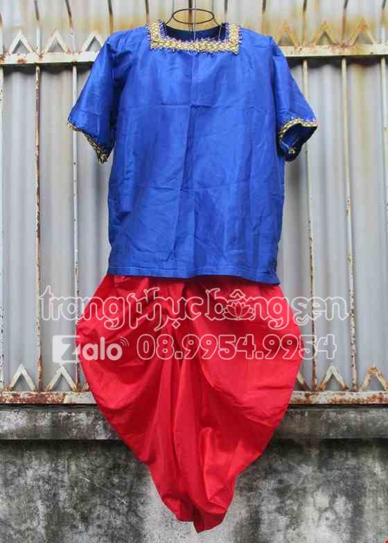 Trang phục dân tộc Khơ me (Khmer) nam áo xanh dương quần đỏ
