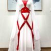 Bộ gồm áo, váy, chuỗi ngọc đội đầu và quạt.