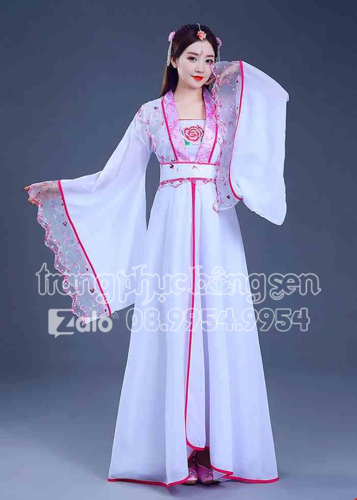 Trang phục Hằng Nga yếm hoa, voan trắng viền hồng