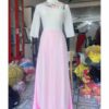 Bộ gồm: áo dài, chân váy xòe/ quần váy, mấn nữ nhân hoặc cài ngọc trai.