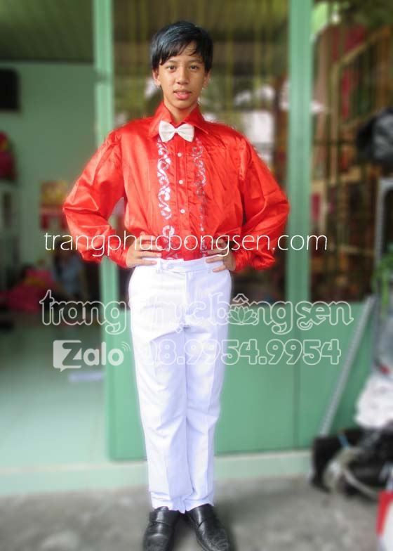 Trang phục múa sơ mi nam vẽ kim tuyến màu đỏ