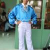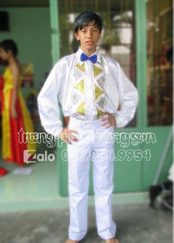 Trang phục múa sơ mi nam vẽ kim tuyến màu trắng