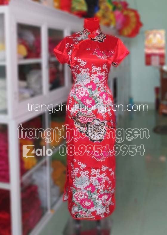 Trang phục Sườn Xám tà dài màu đỏ