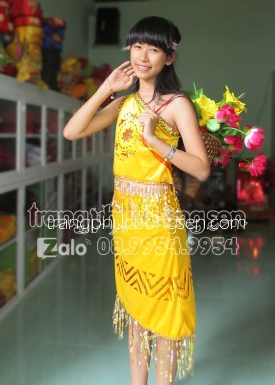 Trang phục Tây Nguyên trẻ em áo nhung vàng chéo vai + váy rời